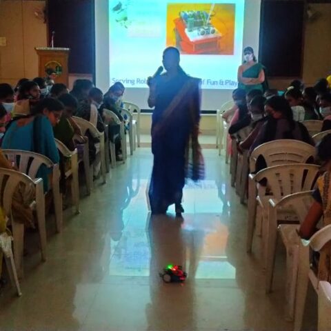 We, Seventh Sense Robotics conducting hands on training on Robotics for college students also. We are invited as resource person in Vellalar College for women by the physics department. We conducted workshop for those students every year. More than hundred students participated in workshop and gained in depth knowledge “How to do Robots”. Our main objective is to impart in- depth knowledge for the participants to teach about working principle of sensors, microcontrollers, motor driver ic to construct a robot and obstacle avoidance robot. The outcome of our workshop is the student’s assembled robotic car using hardware devices and software devices.